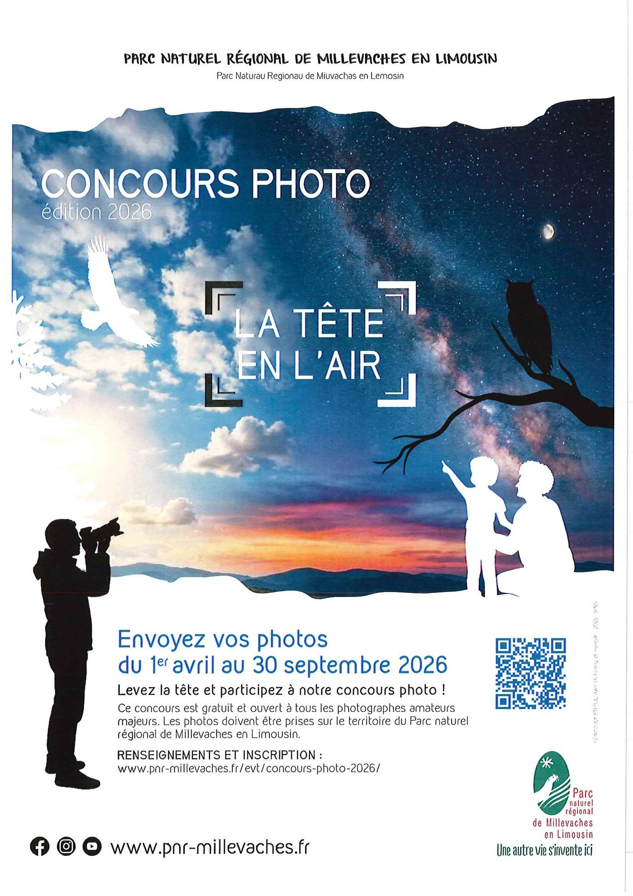 Le règlement du concours et le bulletin d’inscription sont disponibles sur le site du Parc : https://www.pnr-millevaches.fr/evt/concours-photo-2026/