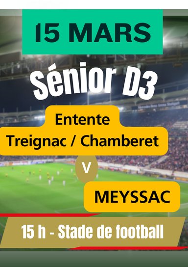 FOOT : dimanche 15 mars sénior D3 : entente Treignac/Chamberet contre Meyssac